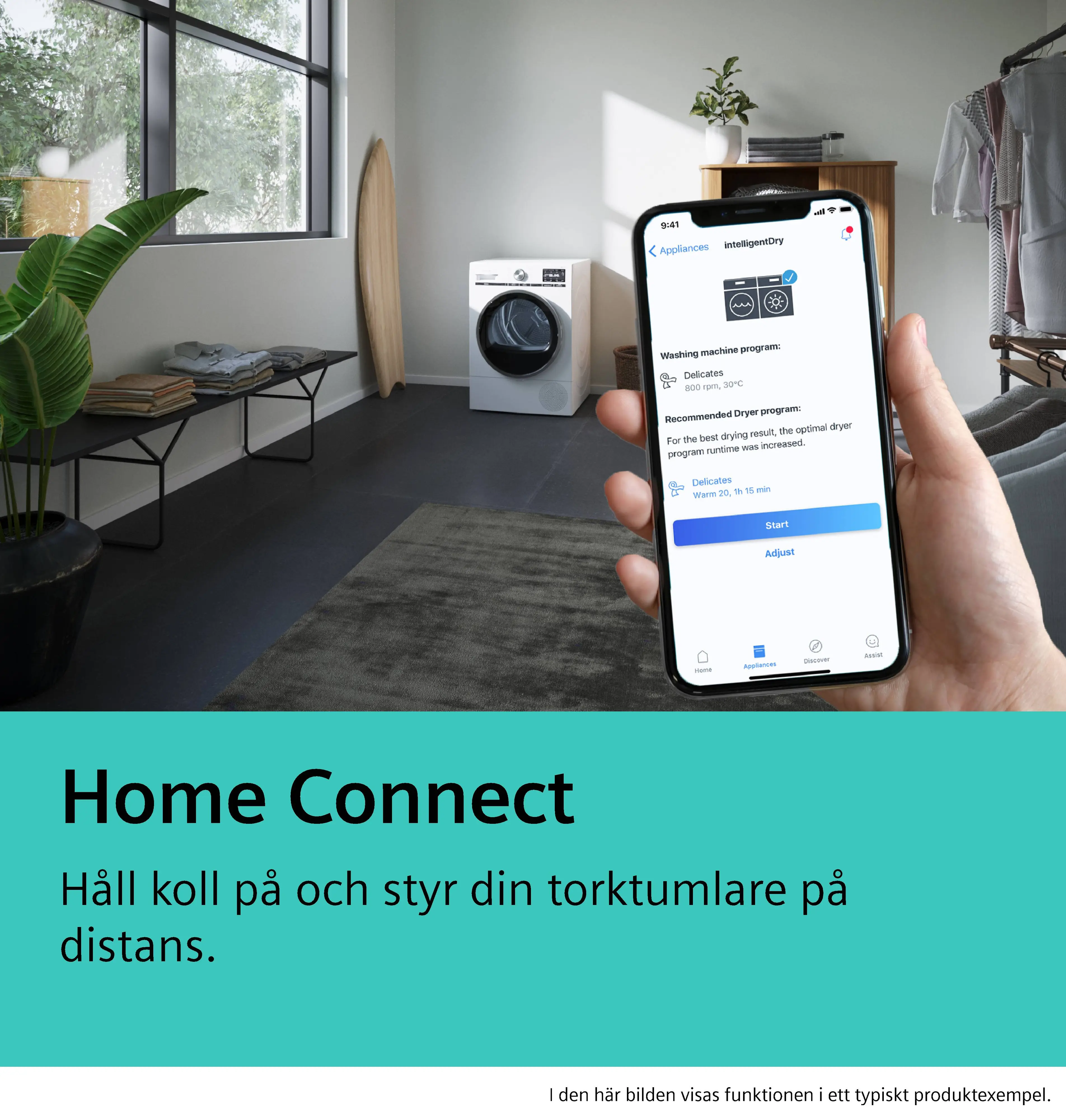 Home Connect - uppkopplade vitvarorFotnot 1: Då och då tillhandahåller vi uppdateringar för att bevara funktionerna i din anslutna hushållsapparat (särskilt säkerhetsuppdateringar). Sådana uppdateringar känner du till från din smartphone. Om du vill bli informerad när en sådan uppdatering är klar för din Home Connect-aktiverade apparat, fortsätt enligt följande: Ladda ner Home Connect-appen. Registrera och anslut apparaten i appen. Mer information kommer då att finnas tillgänglig i Home Connect-appen.,Fotnot 2: Vissa av funktionerna som visas kan endast användas om enheten är ansluten till ett Home Connect-konto och ett SingleKey ID-konto via Internet. Home Connect är en tjänst från Home Connect GmbH. Mer information om Home Connect finns på www.home-connect.com.