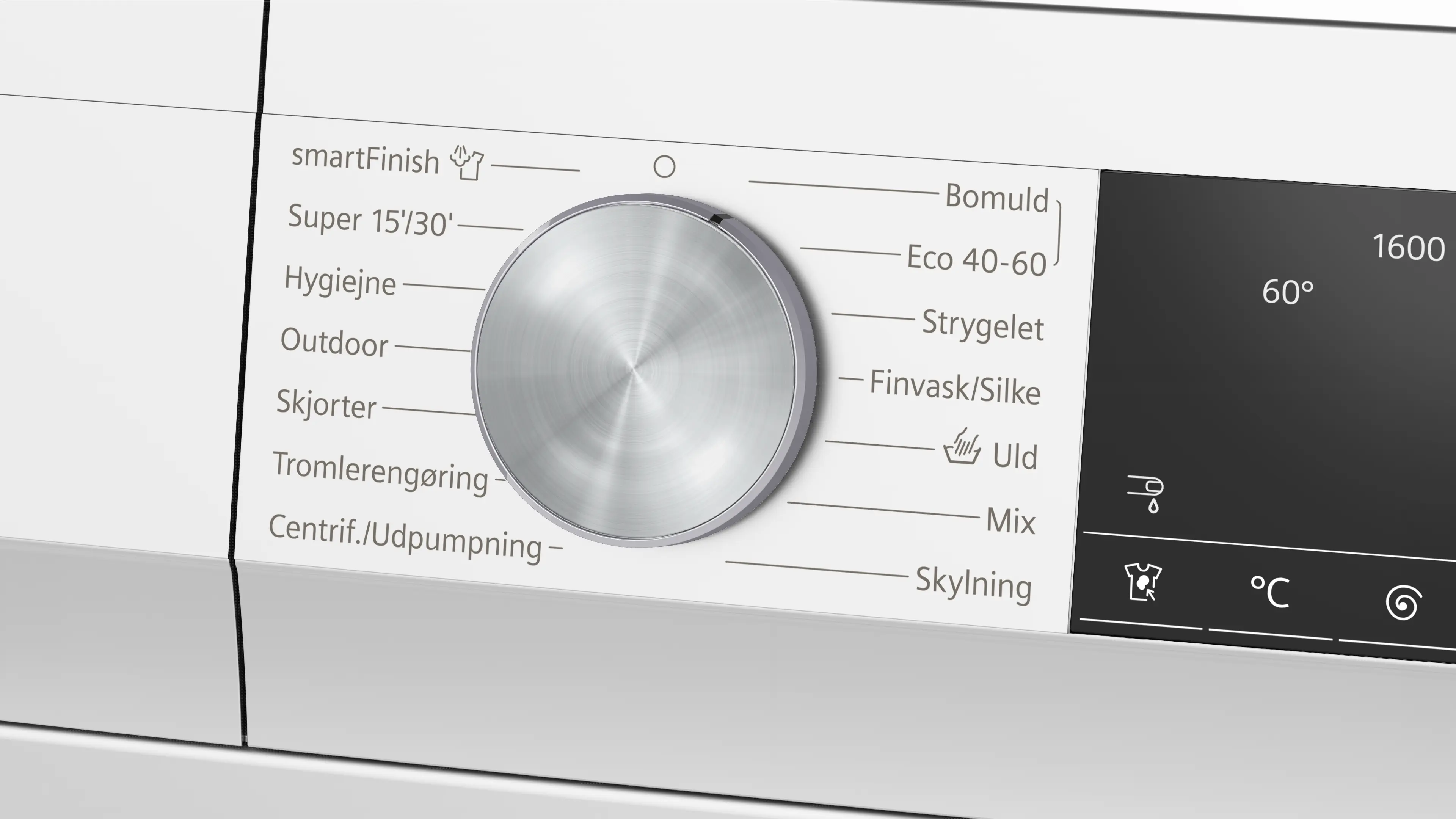 Högsta centrifugeringshastighetFotnot 1: Den maximala centrifugeringshastigheten minskas automatiskt vid tvättobalanser.: 1600 v/min