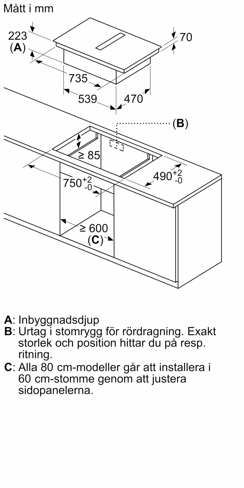 Frånluft och kolfilter (tillbehör köpes separat)