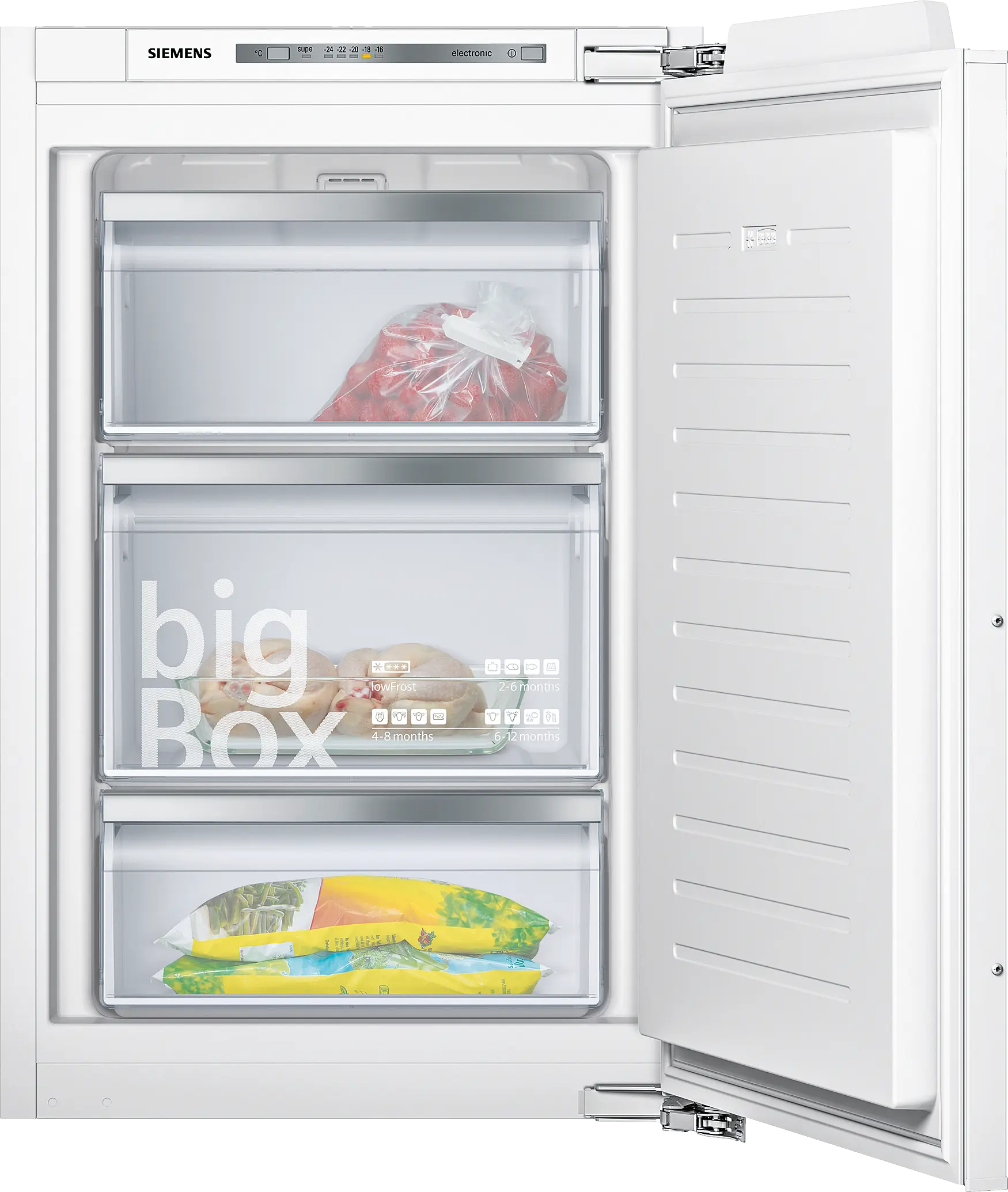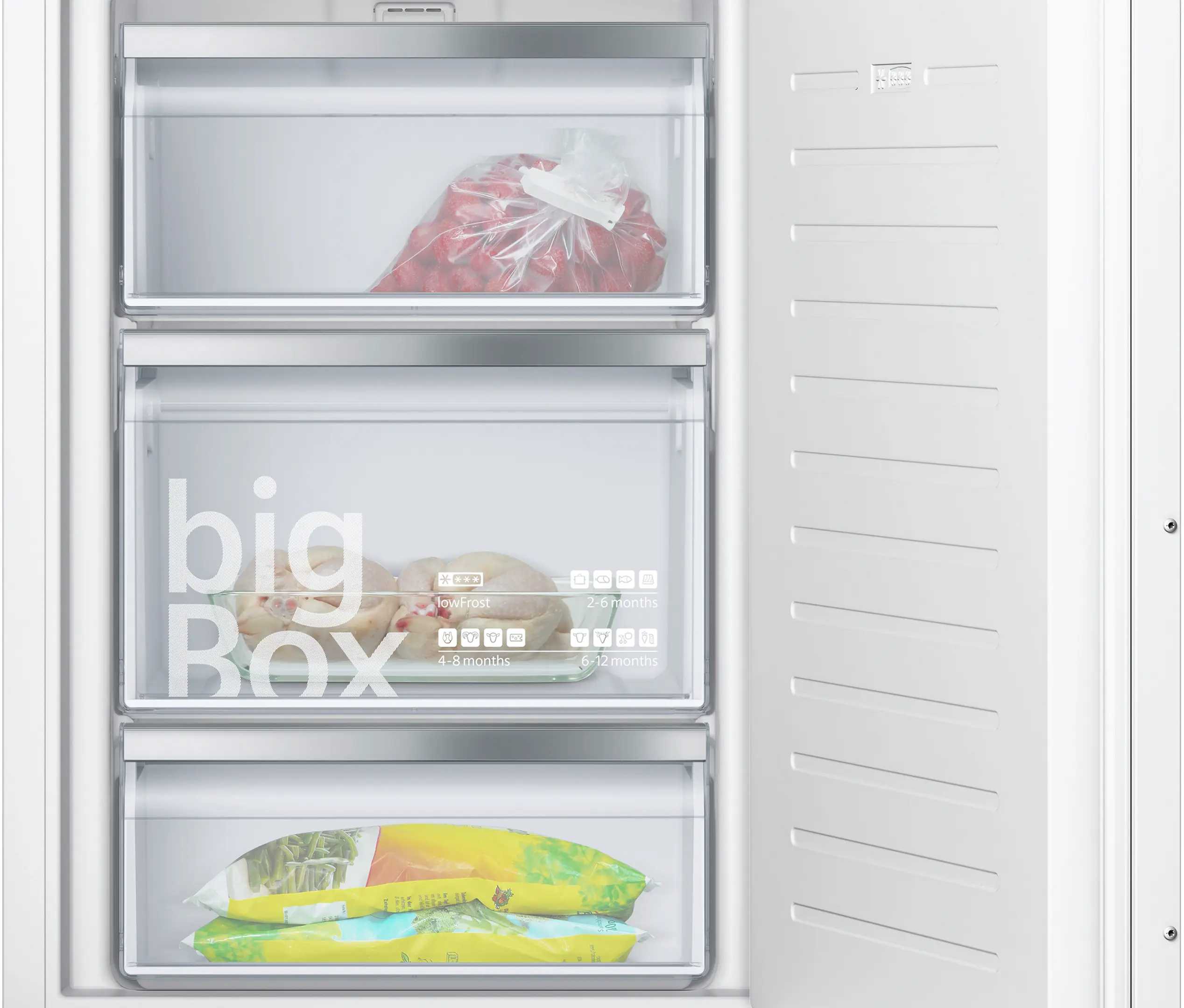 bigBox: extra veľký úložný priestor pre veľké mrazené potraviny.
