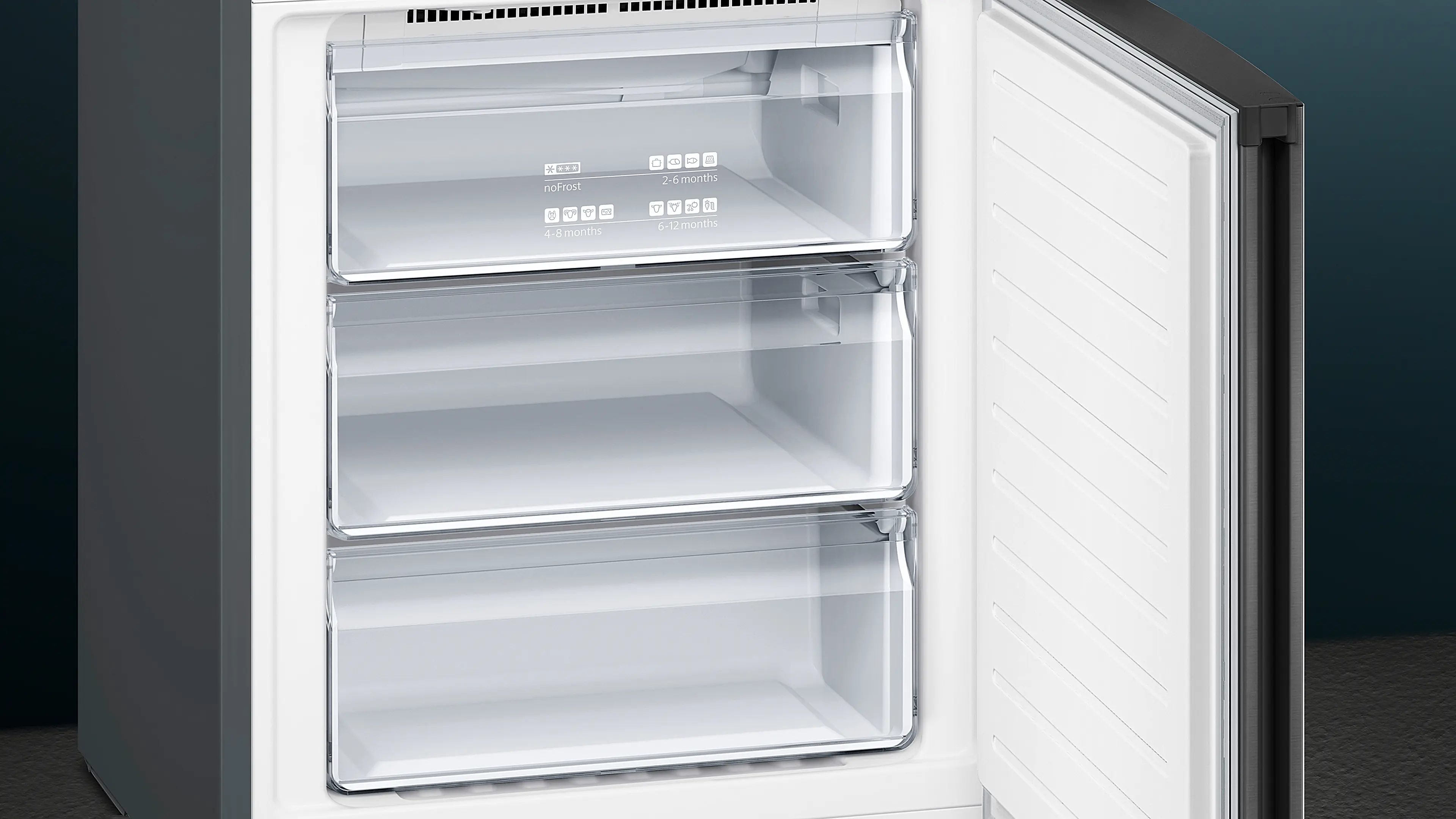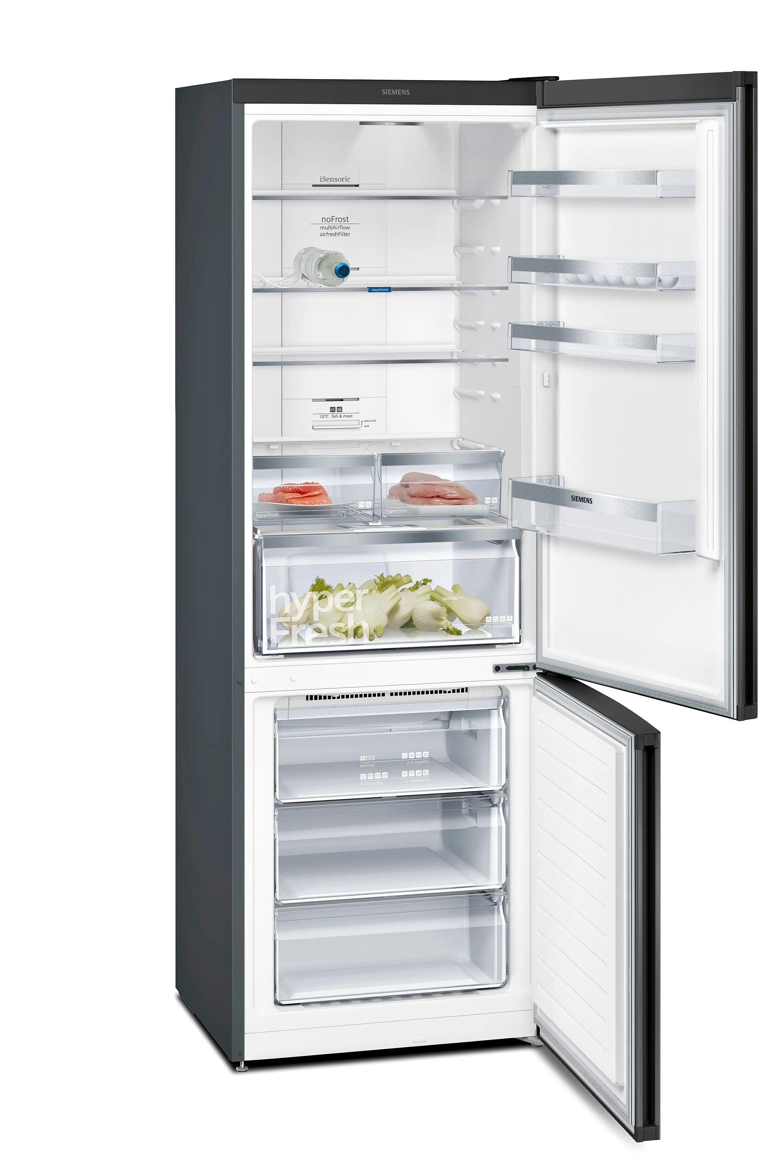 iQ300 Отдельно стоящий холодильник с нижней морозильной камерой 203 x 70 cm Черная нерж. ст. с покрыт. против отпеч., Total noFrostKG49NXX306
