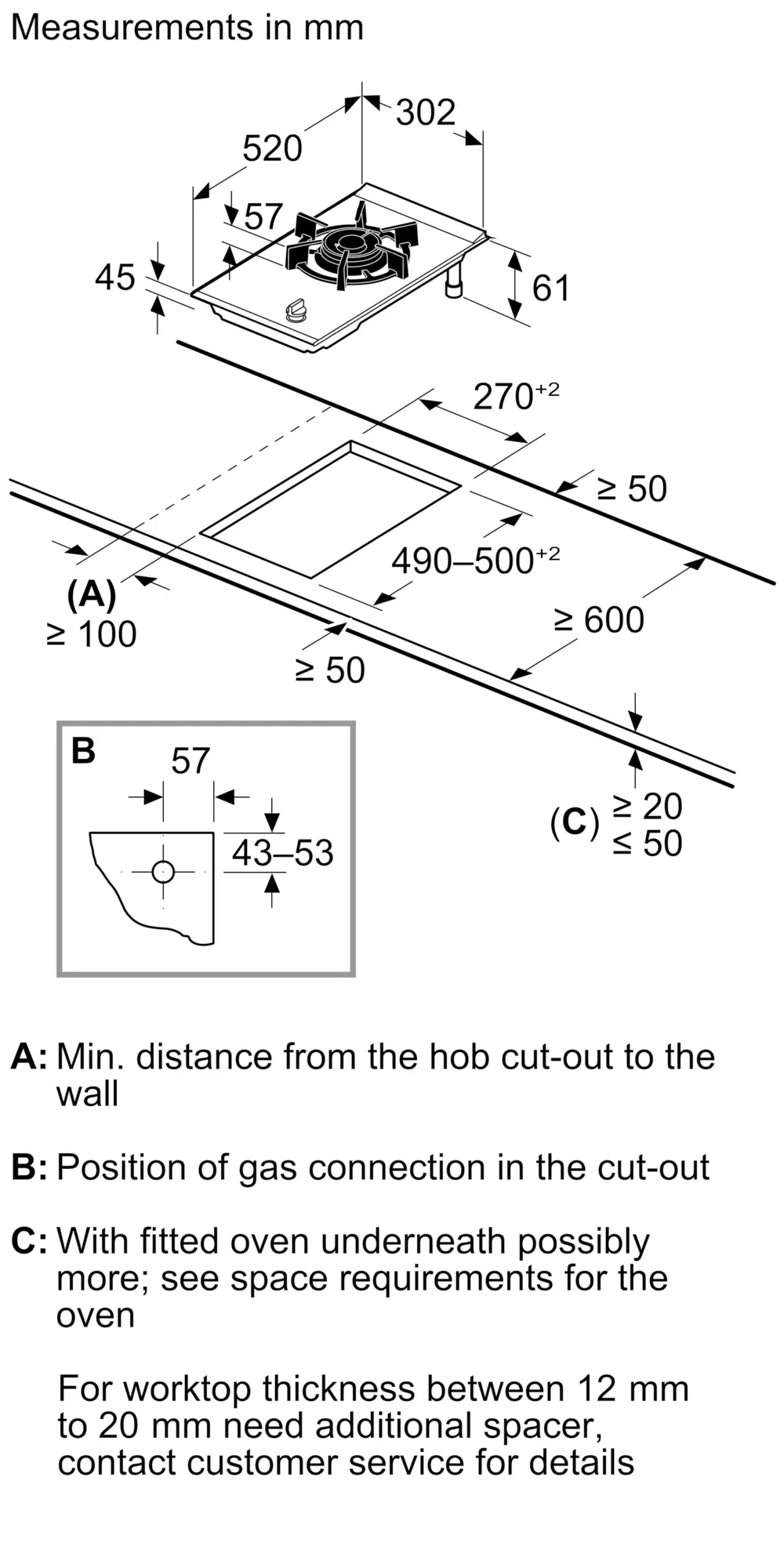 Domino Gas hob 30 cm Ceramic, Black