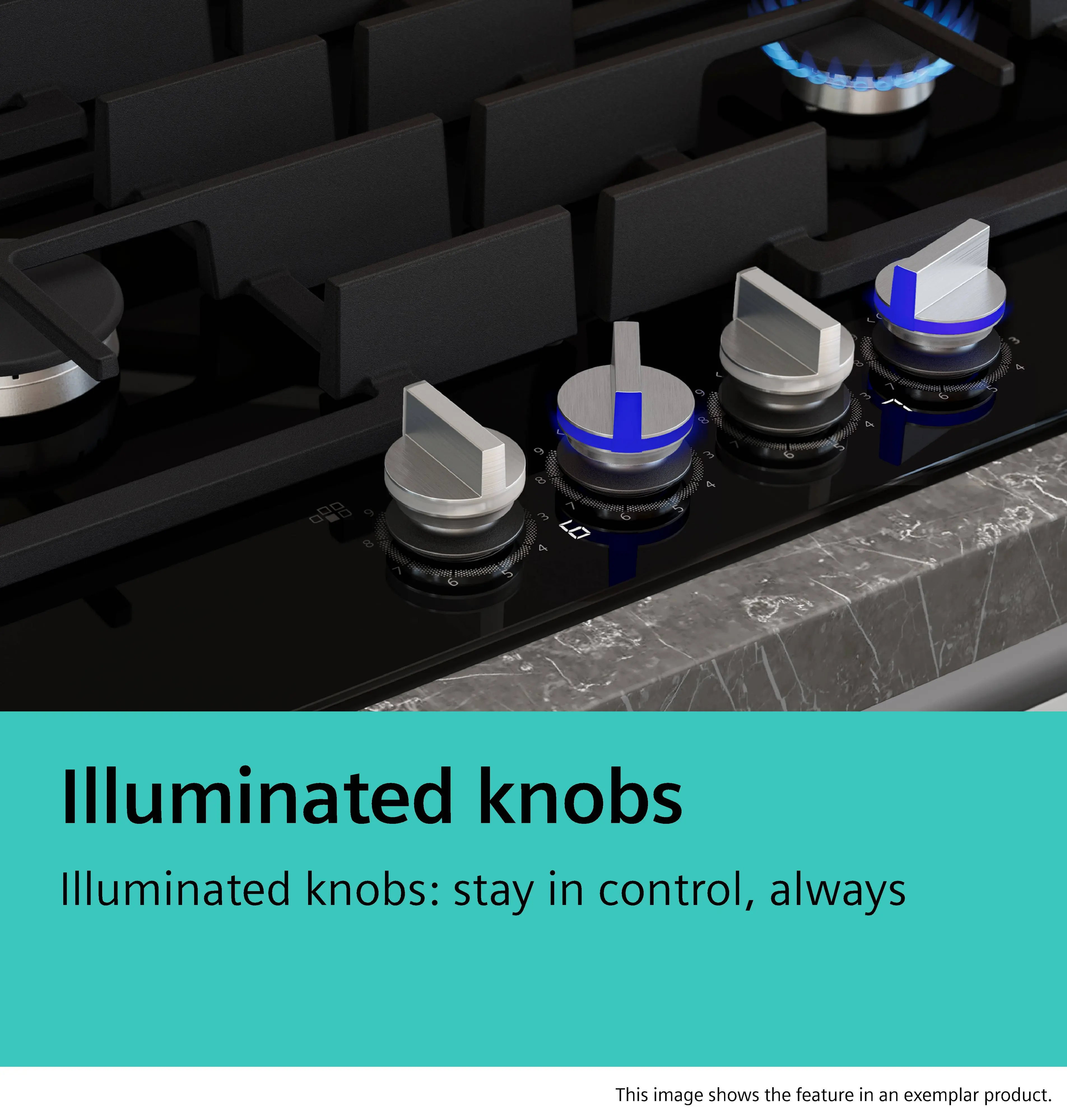 Gas hob 90 cm Tempered glass, Black